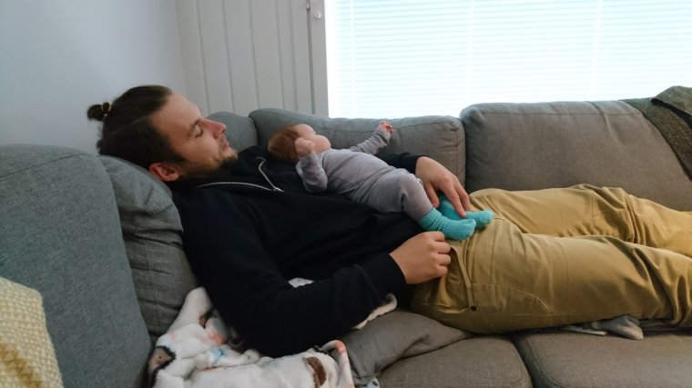 Här har ”stora barnen” börjat vakna mycket om nätterna så vi har delat upp oss som så att mannen sover i gästrummet och har ansvar för äldre barnen. Ofta slutar natten där med att de tre sover i en 120cm säng. Jag själv sitter oftast stora delen av nätterna med bebis i famnen eftersom han ofta för så mycket uppstötningar att han måste ha huvudet jätte högt för att kunna sova. I praktiken vakar jag största delen, slumrar till så gått det går mellan varven.